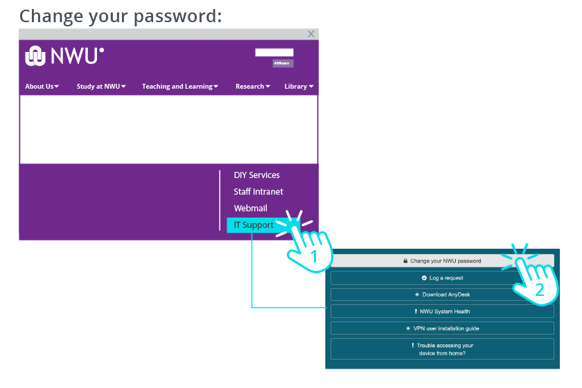 - The NWU’s homepage. Google NWU or type www.nwu.ac.za in your browser.