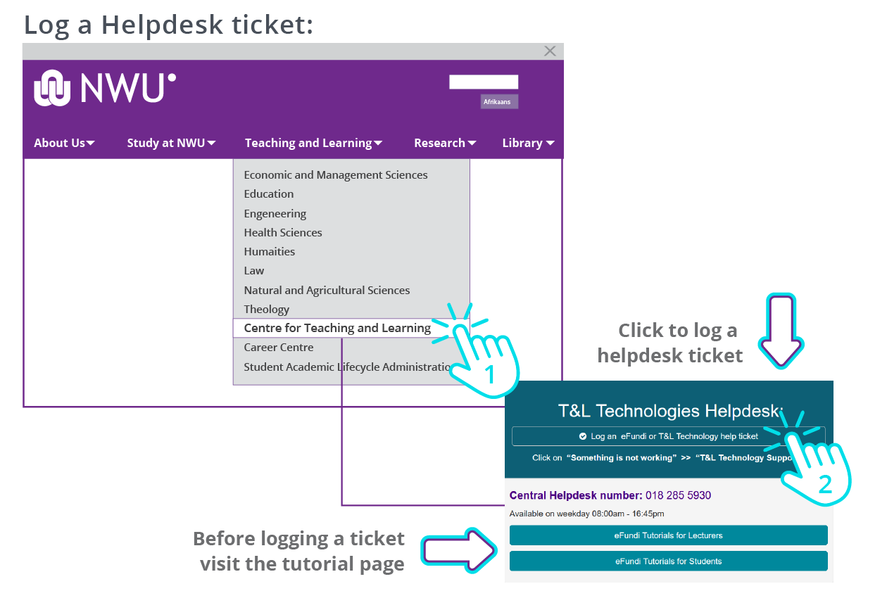 On the NWU’s homepage, you can access eFundi by: