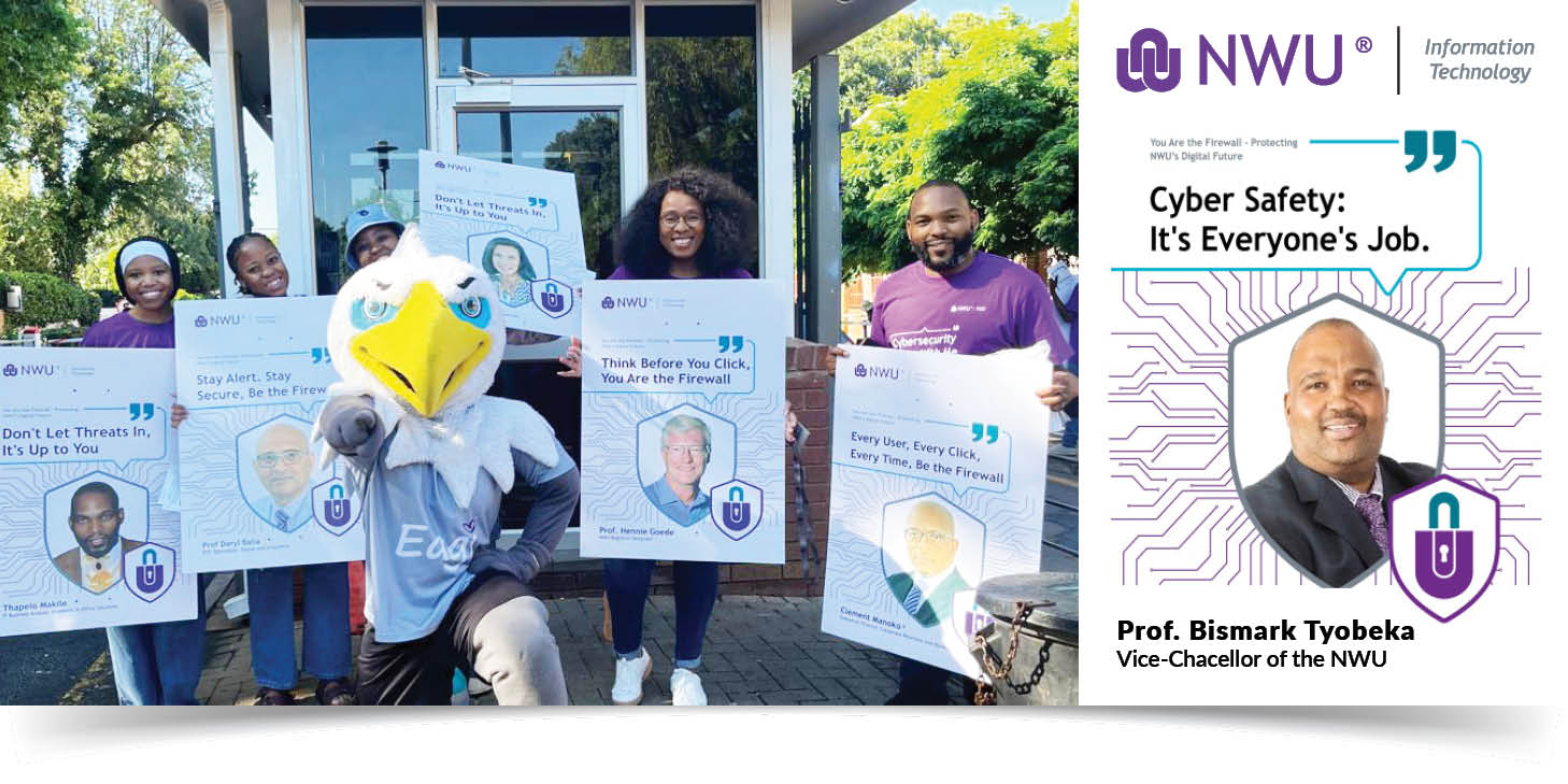 Hoxhunt DIY Services AI@NWU Digital Academy Cybersecurity Awareness Activation Potchefstroom Campus See all 19 November On the Day with Eagi & Team See how Eagi joined the campus awareness activities. View More 19 November Campaign Moments & People Browse photos of the teams, volunteers and participants. View More Smart Cyber Tips Short, practical guides to help you stay cyber smart, videos and step-by-step instructions included. Quick How-to Snippets Watch the video How to identify a phishing email. Step-by-step guide Report suspicious emails via Hoxhunt button. Missing Hoxhunt button Enable the missing red Hoxhunt button. Visit Hoxhunt Need more info: Click the red button Fresh in the Service Catalogue See all DIY Services DIY StarRez System Access Provides staff access to the StarRez residence system, granted by the Administrator after the Supervisor approves the request. Service Catalogue: Services Supported by IT Residence Management System (StarRez) Manages student residence placements and related processes across NWU. Follow Us. Interested in staying updated on IT news? Ensure you're always informed by subscribing. Contact us Each campus has an IT Service Desk. For IT issues, log a fault or contact your campus IT Service Desk. Email us Talk2it@nwu.ac.za
